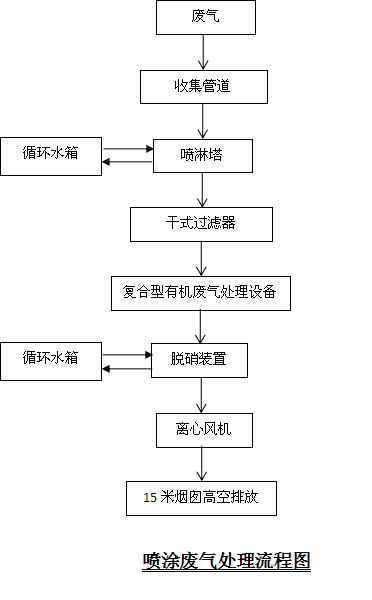 貴公司的有機廢氣主要來源于噴涂車間涂料所含有有機溶劑和涂膜在烘干固化時的分解物即揮發(fā)性有機物(VOC)和氮氧化物廢氣(主要為NO、NO2,其中NO占85%,NO2占15%)。廢氣中的揮發(fā)性有機物的污染成分主要是甲苯、二甲苯等,含有少量的未處理完成的漆霧。我公司通過實地考察及承接同類工程積累經驗,決定采用填料式噴淋塔對廢氣中的漆霧顆粒進行預處理,預處理后廢氣進入一體化復合機有機廢氣處理+脫硝裝置對廢氣進行處理,該工藝既能去除有機廢氣同時達到脫硝的目的。